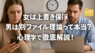 恋愛心理 【女は上書き保存、男は名前をつけて保存理論って本当?心理学で徹底解説】 「女は上書き保存、男は名前を付けて保存」説は本当?情動制御・愛着理論・進化心理学の観点から、恋愛における“記憶と切り替え”の違いを詳しく解説します 2025.08.27 恋愛心理社会心理